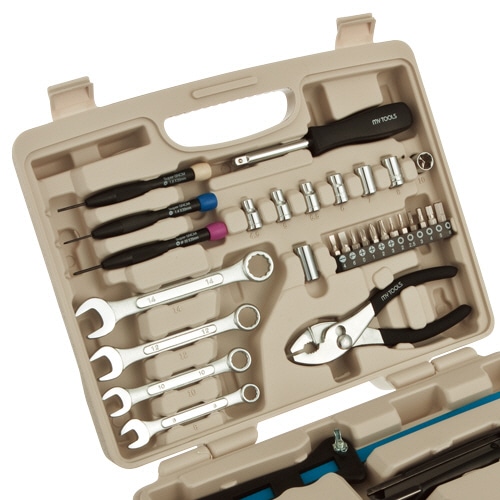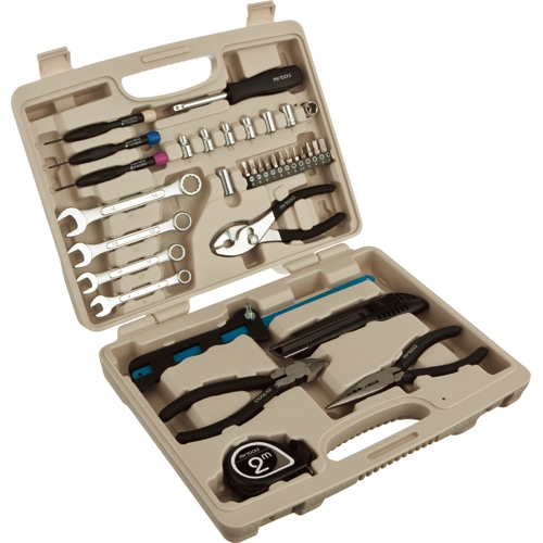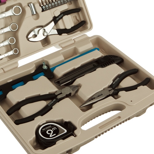 | 商品仕様 | ●セット内容/金切鋸、万能ラジオペンチ150mm、ニッパー150mm、プライヤー150mm、カッターL、精密ドライバー((+)No.00、(-)1.4mm、(-)1.8mm)、6.35mm角ソケット(4.5、5、5.5、6、7、8、10mm)、ビットアダプター、コンビネーションレンチ(8、10、12、14mm)、ドライバービット((-)4mm、(-)6mm、(+)No.0、(+)No.1、(+)No.2、(+)No.3)、六角ビット(2、2.5、3、4、5、6mm)、6.35mm角スピンナハンドル、メジャー2m ●ケースサイズ/W240×D60×H305mm ●重量/1500g |