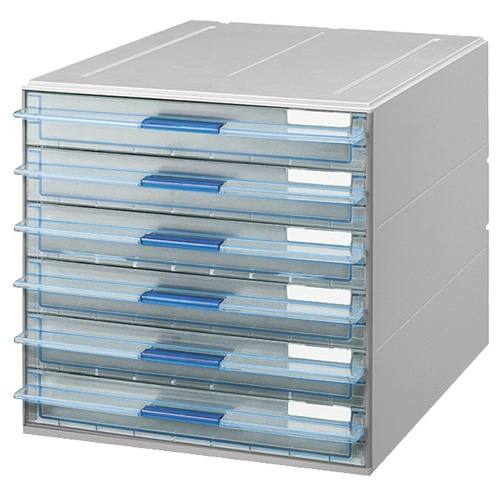 コクヨ レターケース(UNIFEEL) 透明引出しタイプ A4タテ 浅型6段 ライトグレー LC-UNT106M 1台
