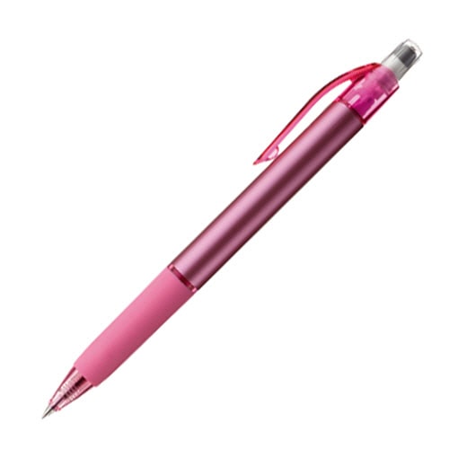 ●きれいに消せて、何度でも書き直せるゲルインクボールぺン。インク色はチェリーピンクです。