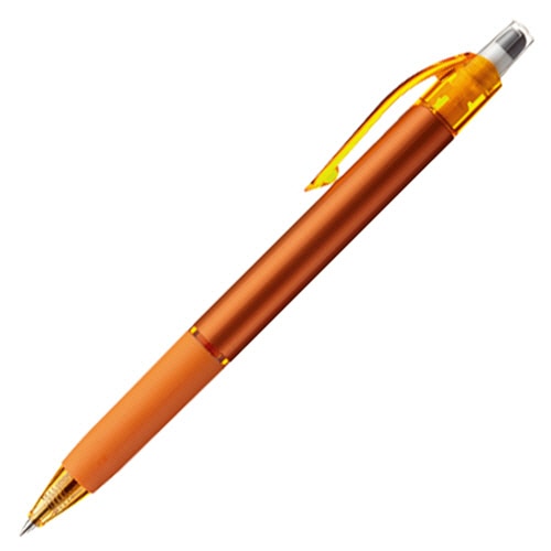●きれいに消せて、何度でも書き直せるゲルインクボールぺン。インク色はサンオレンジです。