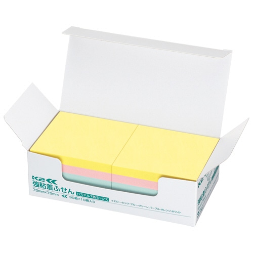 コクヨ 強粘着ふせん<K2> 75×75mm パステルカラー7色 K2メ-KP7575X10 1パック(10冊)