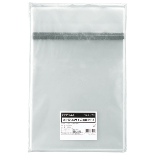 ●封入がしやすいテープのり付、A4サイズのOPP袋100枚入。