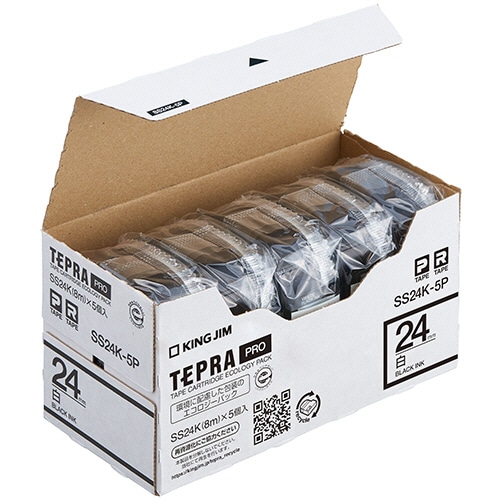 キングジム テプラ PRO テープカートリッジ 24mm 白/黒文字 SS24K-5P 1パック(5個)