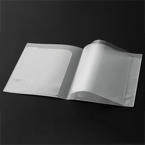 商品仕様 | ●サイズ/A4(見開きA3) ●色/クリア ●寸法/タテ312×ヨコ235mm ●インデックスの有無/なし ●名刺ポケット/スリット ●材質/再生ポリプロピレン ●その他仕様/●4ポケット ●背幅:2mm ●表紙厚:0.4mm ●名刺スリット付 ●備考/※印刷物はよく乾かしてから入れてください。印刷物によっては化学反応を起こし、変形する場合があります。 ●サ イ ズ/A4 ●カラー/クリア(系) |