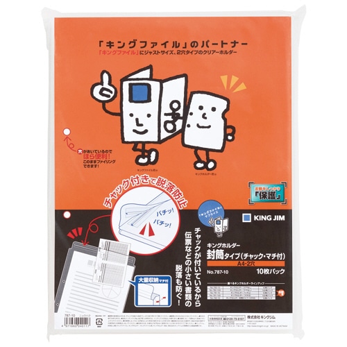 キングジム キングホルダー 封筒タイプ チャック・マチ付 A4タテ 乳白 787-10-M 1パック(10枚)