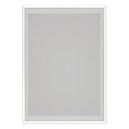 商品仕様 | ●対応用紙サイズ/A4(B5対応) ●寸法/W215×D13×H302mm ●重量/310g ●色/シルバー ●材質/フレーム:アルミ、表面シート:再生PET材(厚み0.6mm)、マット紙(厚み2.5mm)、裏板(黒段ボール) ●付属品/吊り下げ金具、吊り下げひも |