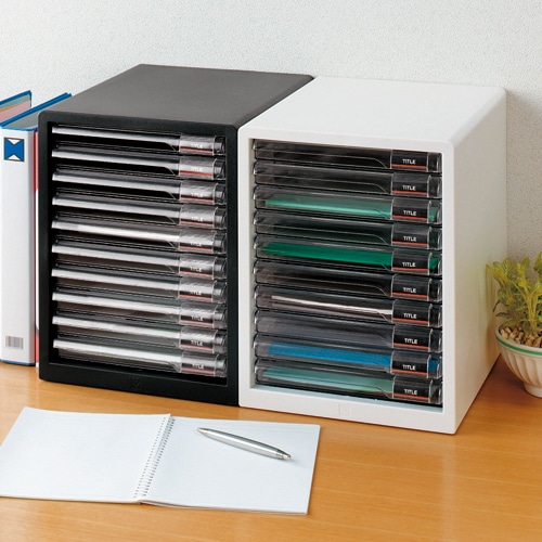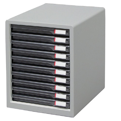 商品仕様 | ●サイズ/A4タテ ●段数仕様/スリム10段 ●外寸/W約265×D350×H345mm ●引出内寸/W230×D320×H25mm ●色/ライトグレー ●材質/本体:ハイインパクトスチロール、引出:スチロール樹脂 ●付属品/インデックスラベル ●その他仕様/●滑り止め用のゴム脚付き |