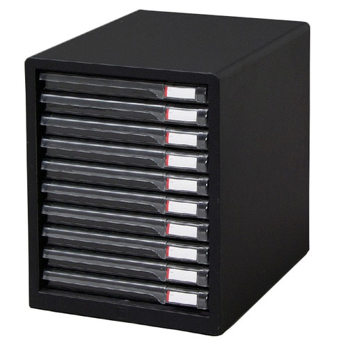 商品仕様 | ●サイズ/A4タテ ●段数仕様/スリム10段 ●外寸/W約265×D350×H345mm ●引出内寸/W230×D320×H25mm ●色/ダークグレー ●材質/本体:ハイインパクトスチロール、引出:スチロール樹脂 ●付属品/インデックスラベル ●その他仕様/●滑り止め用のゴム脚付き |