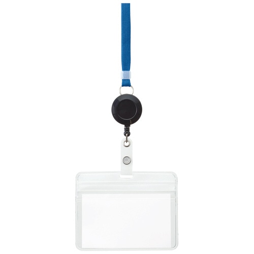 TANOSEE リール式吊下げ名札 防水チャック付 青 1個