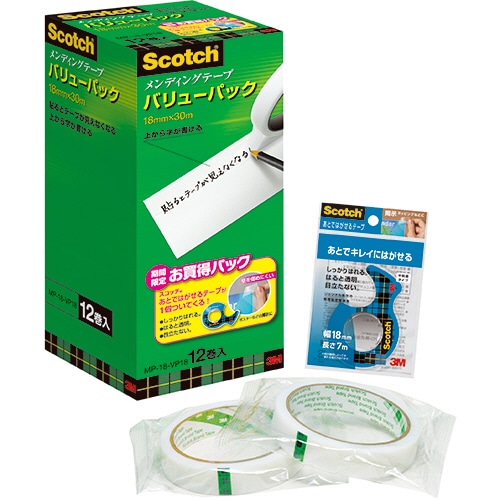 3M スコッチ メンディングテープ バリューパック 大巻 18mm×30m12巻+ディスペンサー MP-18-VP18 1セット
