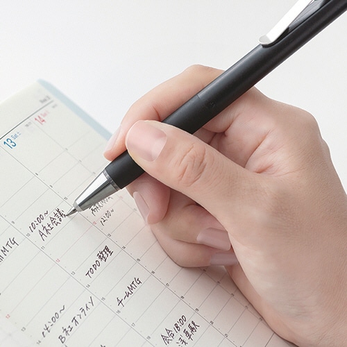●不安定な場所でも濃く書けて使いやすいZEBRAの「ブレンU」。ボール径0.7mm、軸色は白です。