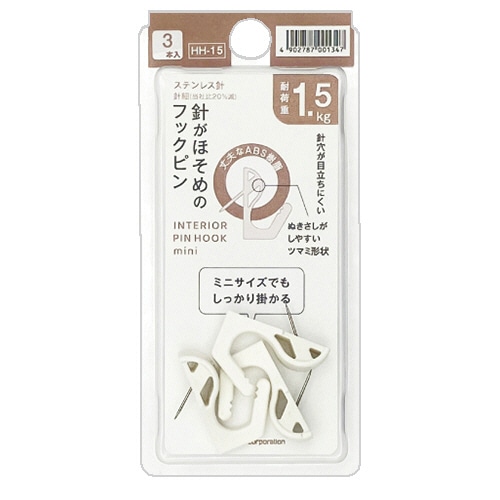 ミツヤ 針がほそめのフックピン 白 HH-15 1パック(3本)