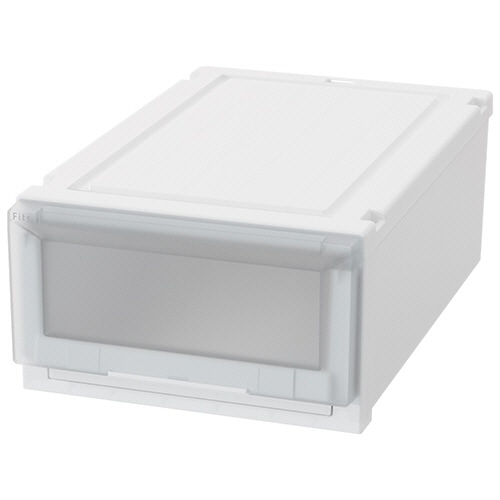 ●上からも下からも引き出せるフィッツケース アドバンス。幅35×奥行55×高さ20cmタイプ、色はホワイトクリアです。
