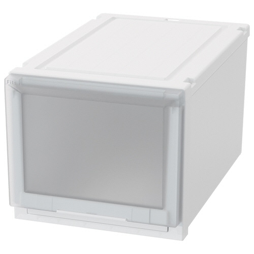 ●上からも下からも引き出せるフィッツケース アドバンス。幅35×奥行55×高さ30cmタイプ、色はホワイトクリアです。