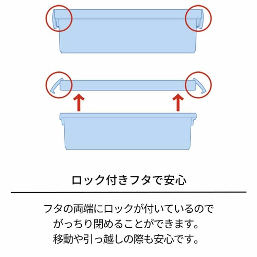 ●フタの両端にロックが付いているのでかっちり閉めることができます。移動や引っ越しの際も安心です。