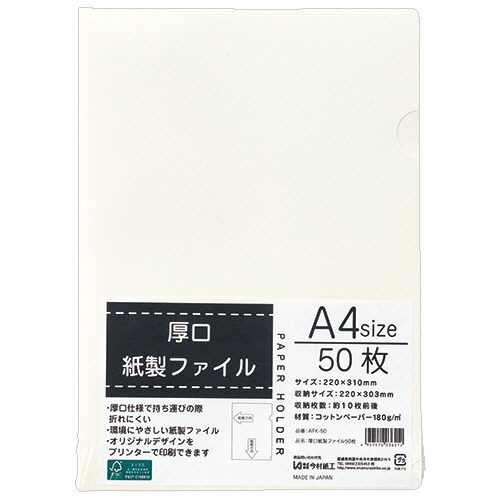 今村紙工 厚口紙製ファイル A4 AFK-50 1パック(50枚)