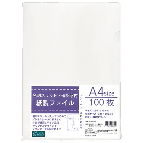 今村紙工 紙製ファイル(名刺スリット・確認窓付) A4 MSKF-100 1パック(100枚)