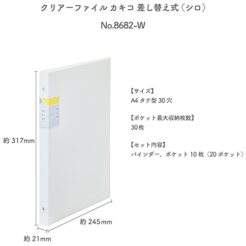キングジム クリアーファイルカキコ 差し替え式 A4タテ 30穴 20ポケット 背幅21mm 白 8682-W 1冊