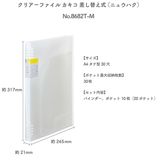 キングジム クリアーファイルカキコ 差し替え式(透明) A4タテ 30穴 20ポケット 背幅21mm 乳白 8682T-M 1冊