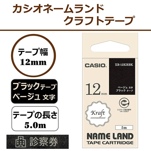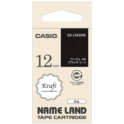 カシオ NAME LAND クラフトテープ 12mm×5m ブラック/ベージュ文字 XR-12KRBK 1個