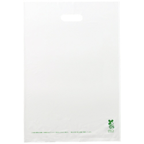 ●バイオポリエチレン(ツルツルタイプ)の手提袋。Lサイズ、色はホワイト、50枚入りです。