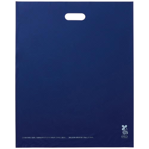 | 商品仕様 | ●サイズ/LL ●タイプ/小判抜きポリ手提袋 ●マチ/なし ●色/ネイビー ●寸法/幅400×マチ幅×高さ500mm ●厚さ/0.04mm ●材質/低密度ポリエチレン(LDPE)(バイオマス25%、リサイクルポリ30%使用) ●その他仕様/●収容サイズの目安:B4 |