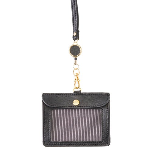 | 商品仕様 | ●色/ブラック ●ケースサイズ/タテ83×ヨコ105mm ●適応カードサイズ/タテ55×ヨコ91mm ●ひもサイズ/幅8mm×長さ約80cm ●リール伸縮/約32cm ●カード挿入方向/タテ入れ ●長さ調節/可 ●安全パーツ/あり ●材質/本体:合皮・PVC、ひも:合皮・POM、金具:亜鉛合金 ●ストラップ色/ブラック(系) |