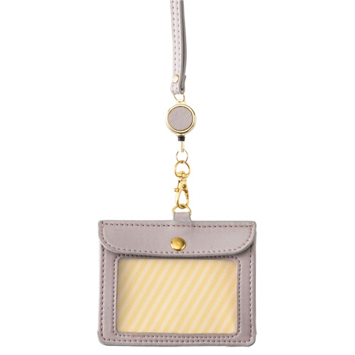 | 商品仕様 | ●色/グレー ●ケースサイズ/タテ83×ヨコ105mm ●適応カードサイズ/タテ55×ヨコ91mm ●ひもサイズ/幅8mm×長さ約80cm ●リール伸縮/約32cm ●カード挿入方向/タテ入れ ●長さ調節/可 ●安全パーツ/あり ●材質/本体:合皮・PVC、ひも:合皮・POM、金具:亜鉛合金 ●ストラップ色/グレー(系) |