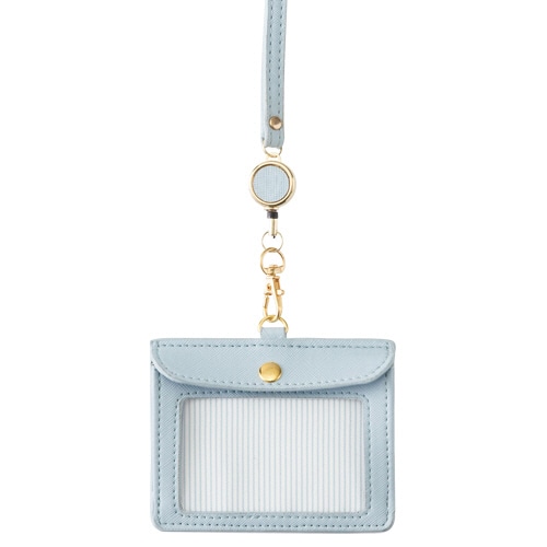 | 商品仕様 | ●色/ブルー ●ケースサイズ/タテ83×ヨコ105mm ●適応カードサイズ/タテ55×ヨコ91mm ●ひもサイズ/幅8mm×長さ約80cm ●リール伸縮/約32cm ●カード挿入方向/タテ入れ ●長さ調節/可 ●安全パーツ/あり ●材質/本体:合皮・PVC、ひも:合皮・POM、金具:亜鉛合金 ●ストラップ色/ブルー(系) |