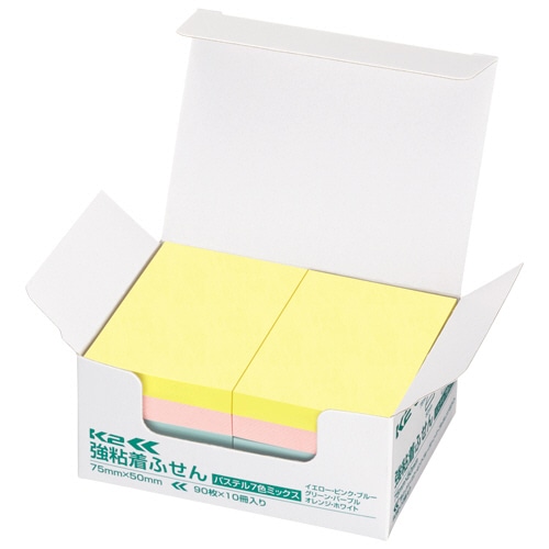 コクヨ 強粘着ふせん<K2> 75×50mm パステルカラー7色 K2メ-KP7550X10 1パック(10冊)
