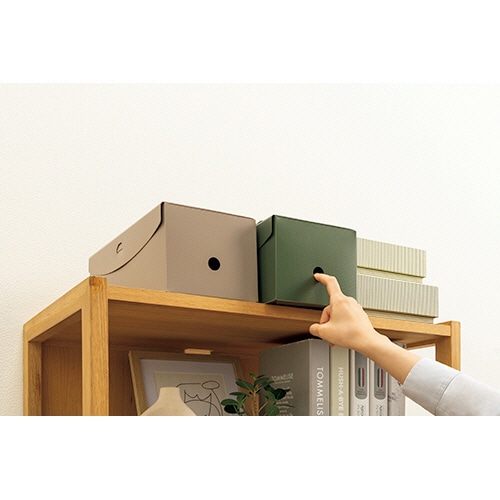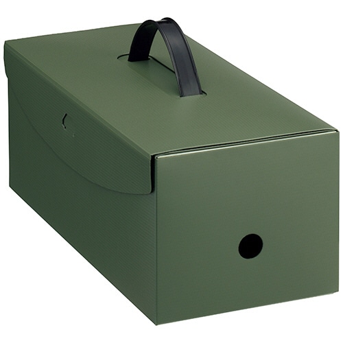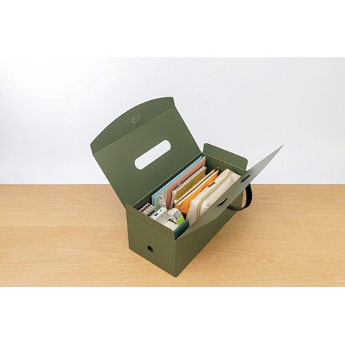 ●A4ヨコ1/2のボックスファイル。カラーはモスグリーンです。
