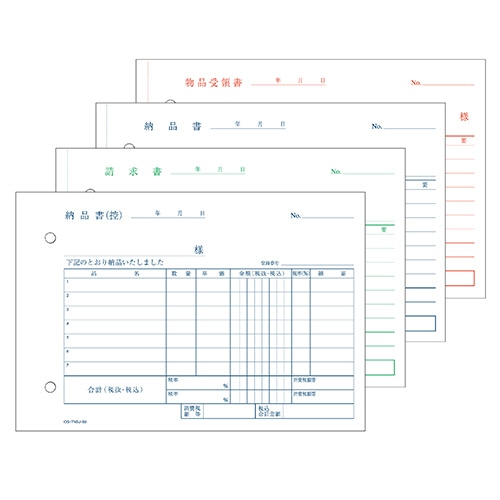TANOSEE 納品書(請求/受領付) B6ヨコ型 4枚複写 ノーカーボン 50組 1冊