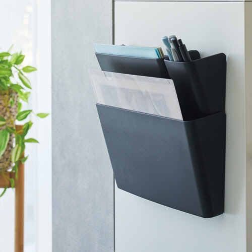 スチール面に貼り付けて、省スペースで使えるマグネット付きポケット。
