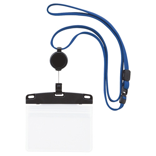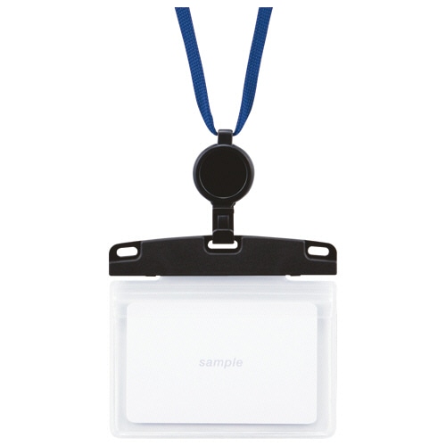 オープン工業 吊下げ名札 リール式 ソフトタイプ ヨコ名刺サイズ 2枚収容 青 NL-27P-BU 1個