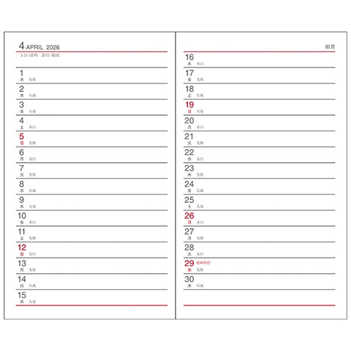 | 商品仕様 | ●サイズ/手帳 ●寸法/タテ144×ヨコ86mm ●内容/カレンダー、年間スケジュール、月間予定表(2025年12月~2026年12月)(見開き2ヵ月2027年1月~2027年4月)、週間予定表(2025年12月~2026年12月)、横罫、切り取りメモ、パーソナルノート ●ページ数/208ページ ●始まり月/12月 ●始まり曜日/月曜 ●レイアウト/月間カレンダー+週間レフト ●付録/地下鉄路線図、全国鉄道地図、数え方一覧、贈答のエチケット、人生の記念日一覧、暦について、いざという時のための地震マニュアル、印紙税額一覧表、度量衡換算表、用紙サイズ一覧、年齢早見表、住所録・緊急連絡先メモ ●色/ブラック ●材質/表紙:PVC ●重量/107g ●その他仕様/●製本:糸かがり製本 ●備考/※寸法は中身のサイズです。 |