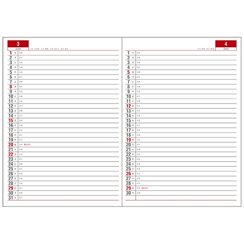 | 商品仕様 | ●サイズ/B5判 ●寸法/タテ257×ヨコ182mm ●内容/カレンダー、年間スケジュール、月間予定表(2025年11月~2026年12月)、週間予定表(2025年12月~2026年12月)、次年度年間スケジュール、横罫、パーソナルノート ●ページ数/224ページ ●始まり月/12月 ●始まり曜日/月曜 ●レイアウト/月間カレンダー+週間レフト ●付録/地下鉄路線図、全国鉄道地図、数え方一覧、贈答のエチケット、人生の記念日一覧、暦について、いざという時のための地震マニュアル、印紙税額一覧表、度量衡換算表、用紙サイズ一覧、年齢早見表、住所録・緊急連絡先メモ ●色/ブラック ●材質/表紙:PVCカバー ●重量/555g ●その他仕様/●製本:糸かがり製本 ●備考/※寸法は中身のサイズです。 |