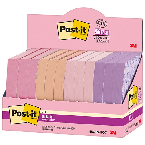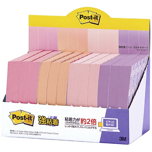 3M ポスト・イット 強粘着ノート マルチカラー7 75×75mm 4色 6541SS-MC-7 1パック(12冊)