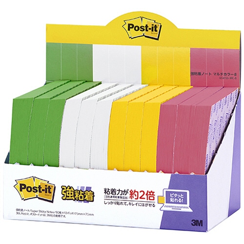 3M ポスト・イット 強粘着ノート マルチカラー8 75×75mm 4色 6541SS-MC-8 1パック(12冊)