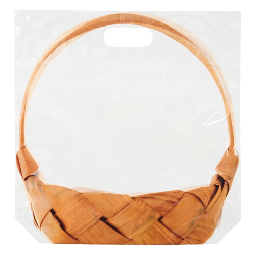 ●かごがプリントされたジップ付きバッグのSサイズ。
