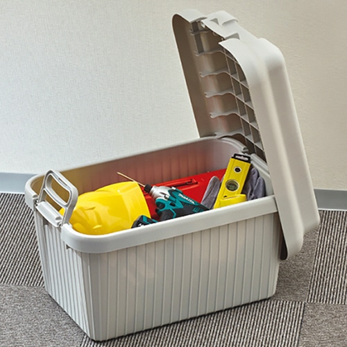 ●工具や防災用品のストックにも。ブラックのマルチコンテナ。