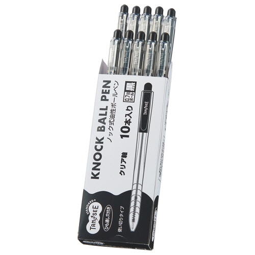 TANOSEE ノック式油性ボールペン 0.7mm 黒 (軸色:クリア) 1パック(10本)