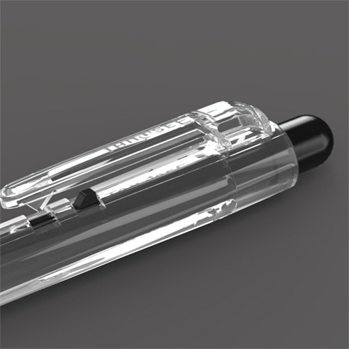 ●インク残量が見えるクリア軸。10本入、インク色は黒です。