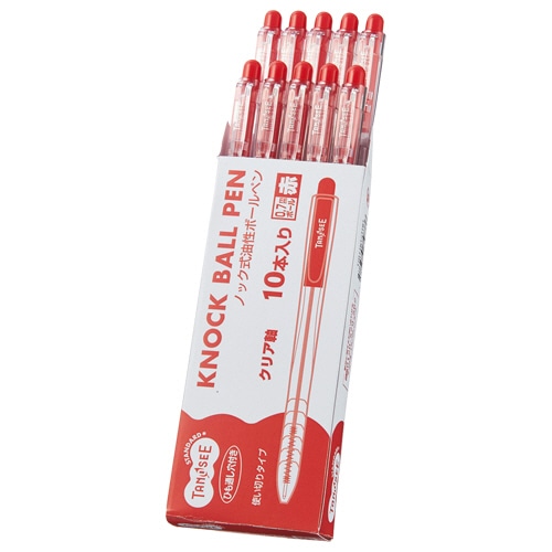 TANOSEE ノック式油性ボールペン 0.7mm 赤 (軸色:クリア) 1パック(10本)