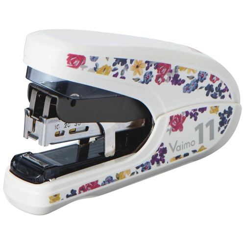 ●薄&厚とじを1つの針で。2枚から約40枚までを、針を替えずにこれ1台でとじることができるフラワー柄のホッチキス。