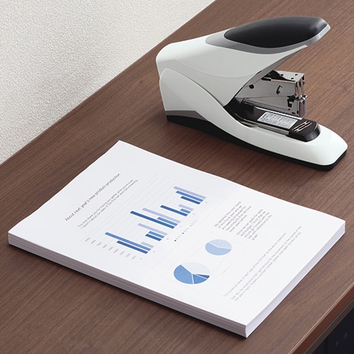 ●厚みのある書類でも最大120枚までしっかりとじられる強力型。