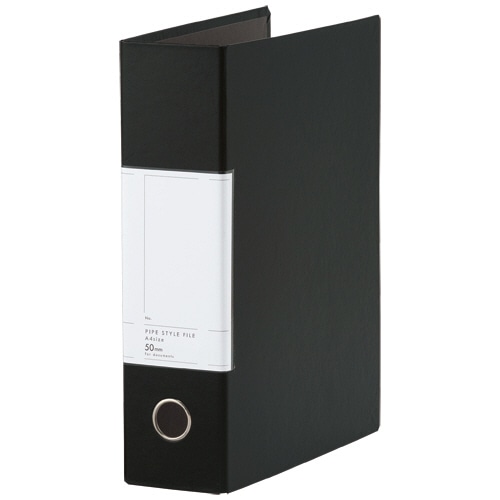 ●スタイリッシュなカラー・デザインの両開きパイプ式ファイル。背幅77mmのブラックです。