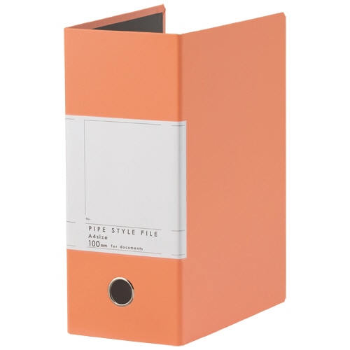 ●スタイリッシュなカラー・デザインの両開きパイプ式ファイル。背幅127mmのオレンジです。
