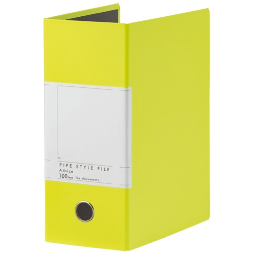 ●スタイリッシュなカラー・デザインの両開きパイプ式ファイル。背幅127mmのライムグリーンです。
