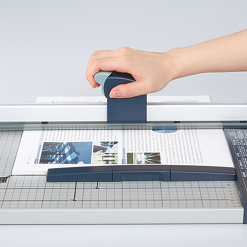 ●裁断枚数60枚切、A3サイズのロータリー式ペーパーカッター。