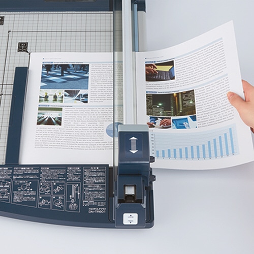 | 商品仕様 | ●対応用紙サイズ/A3 ●裁断枚数/約60枚 ●寸法/W355×D654×H108mm ●対応替マット/DN-600C ●対応替刃/DN-TR01A、DN-TR01B ●材質/テーブル本体:鋼板、スライダー・紙当て・マグネット定規:R-ABS ●付属品/丸刃1枚(本体装着済み)、刃受け2枚(1枚本体装着済み)、マグネット定規1本 |